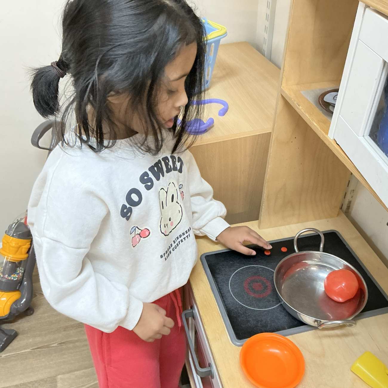 The welcome sunshine means we can take full advantage of our outside area, such as playing in the sand, water and mud kitchen, and even setting up an ice-cream shop in the shed.