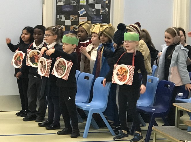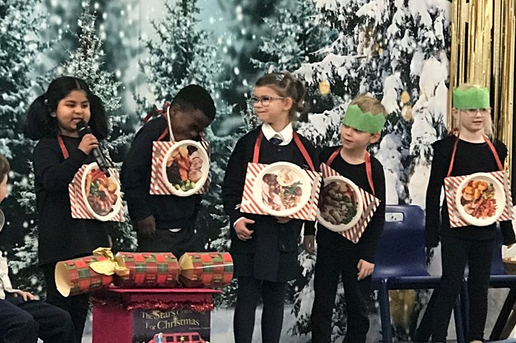 We have had a busy month preparing for our KS1 Christmas show called 'The Stars are Coming out for Christmas'. We had lots of fun learning all the songs and we performed it brilliantly to the school and our parents, even though we were all feeling a little bit nervous! Here are some photographs from one of our performances: